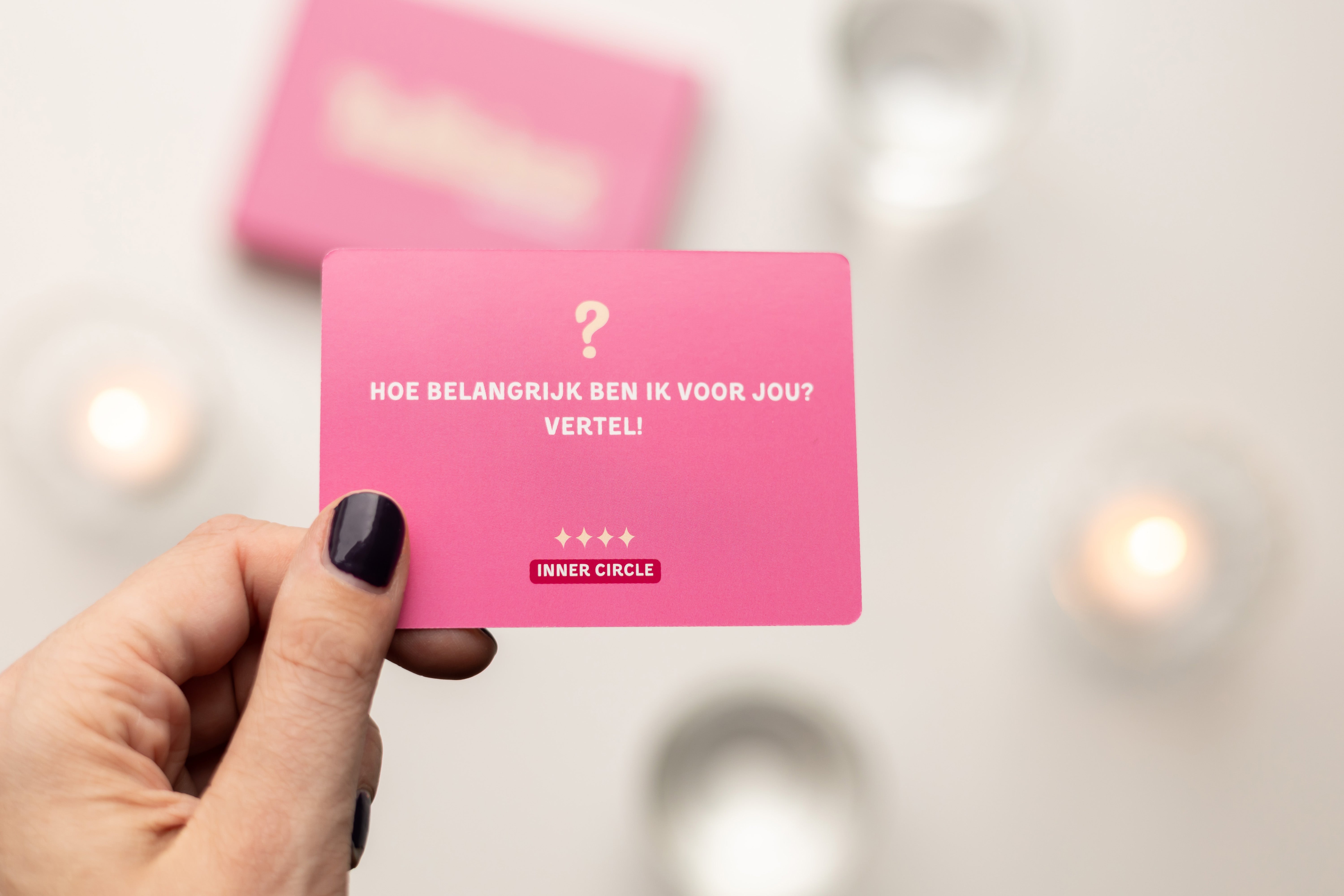 De vragen zijn verdeeld over vier afwisselende categorieën, zodat jullie avond vanzelf een fijne flow krijgt.